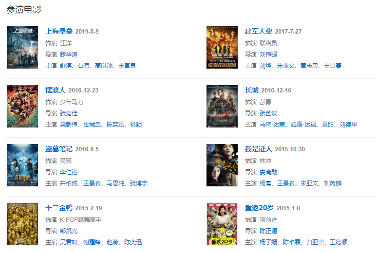 2016年,主演的電影《盜墓筆記》《長城》上映 。同年,登上“中國90后10大影響力人物”榜首,并以2.7億財富居2016“中國90后富豪榜”第五位 。