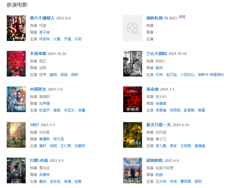2019年,出演犯罪片《第八個(gè)嫌疑人》 。