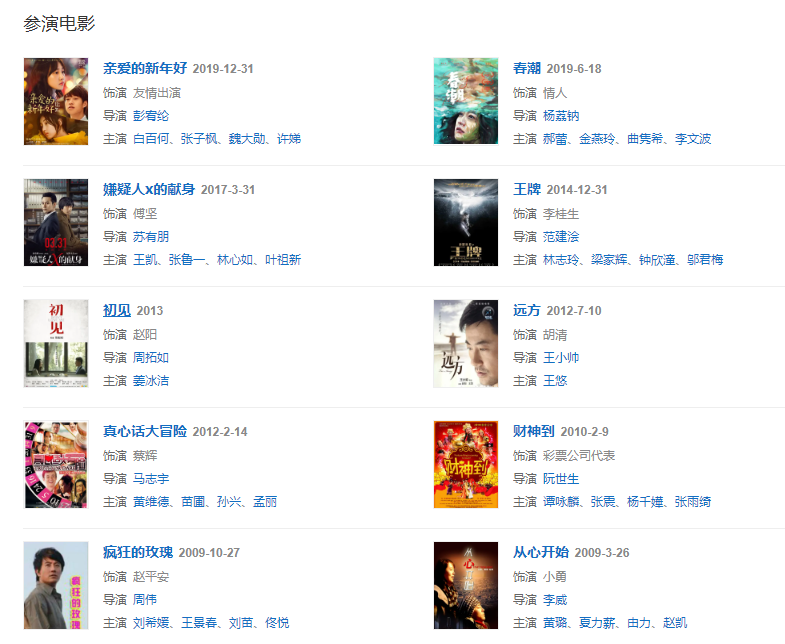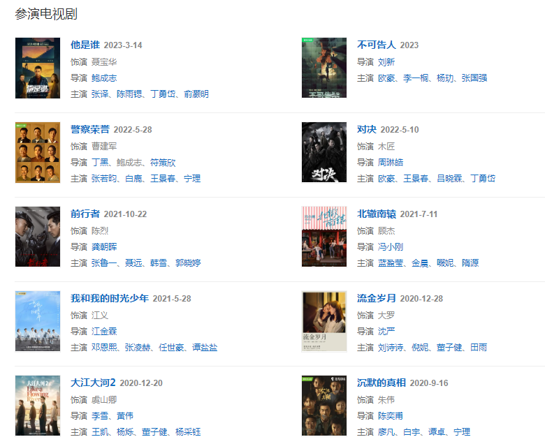 代表作品:少年包青天Ⅲ之天芒傳奇、沉默的真相、對決、警察榮譽、嫌疑人x的獻身、他是誰
