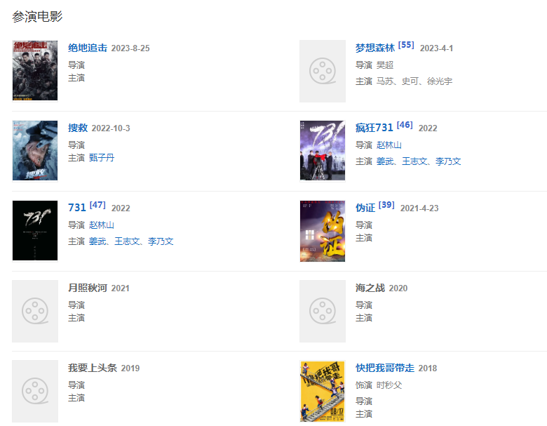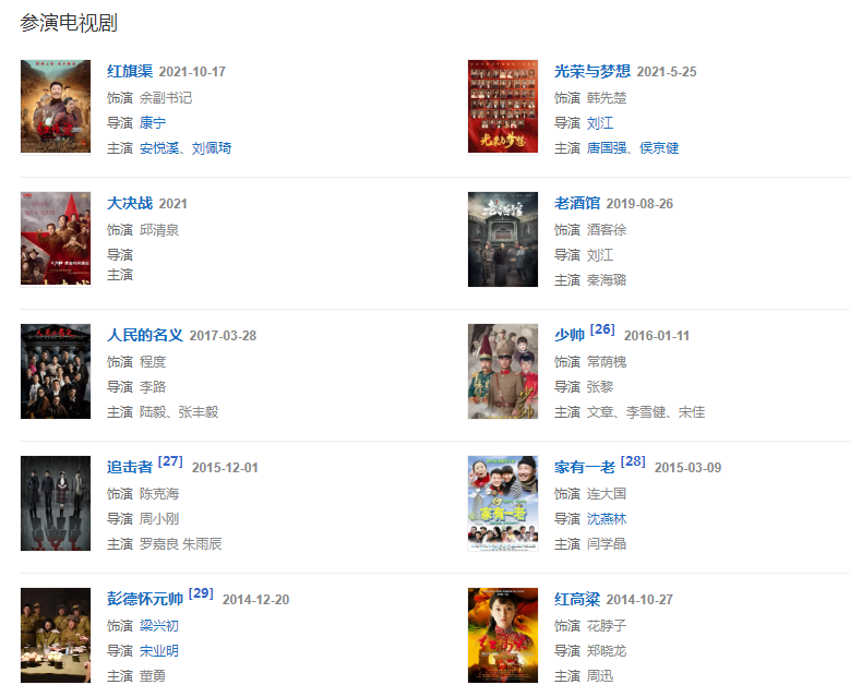 代表作品:人民的名義、紅高粱、孤軍英雄、大營(yíng)救、兵變1938、八路軍