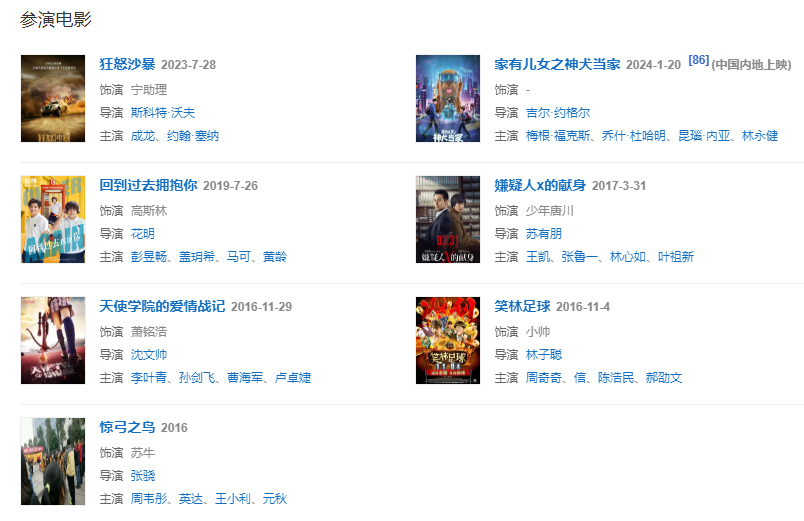 2024年1月20日,參演的電影《家有兒女之神犬當(dāng)家》在中國(guó)內(nèi)地上映。2月24日,參演的電視劇《逍遙》發(fā)布海報(bào)。