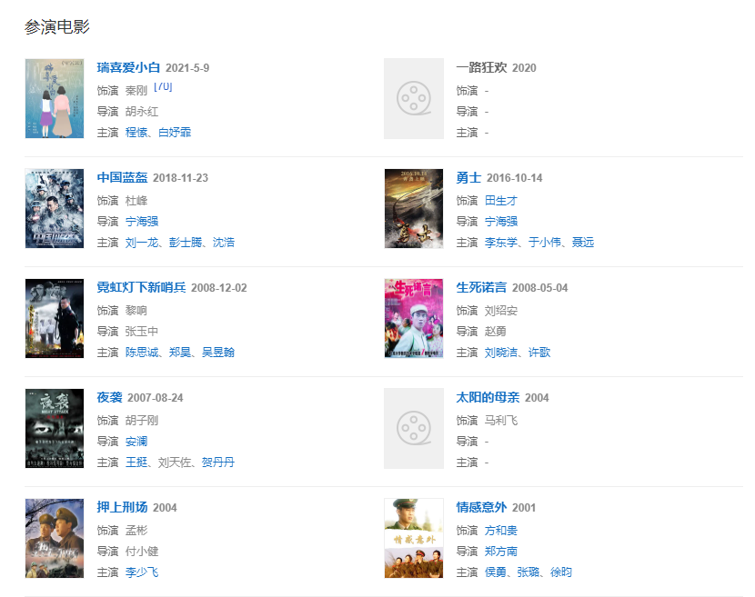 2018年主演軍事題材電影《中國(guó)藍(lán)盔》。