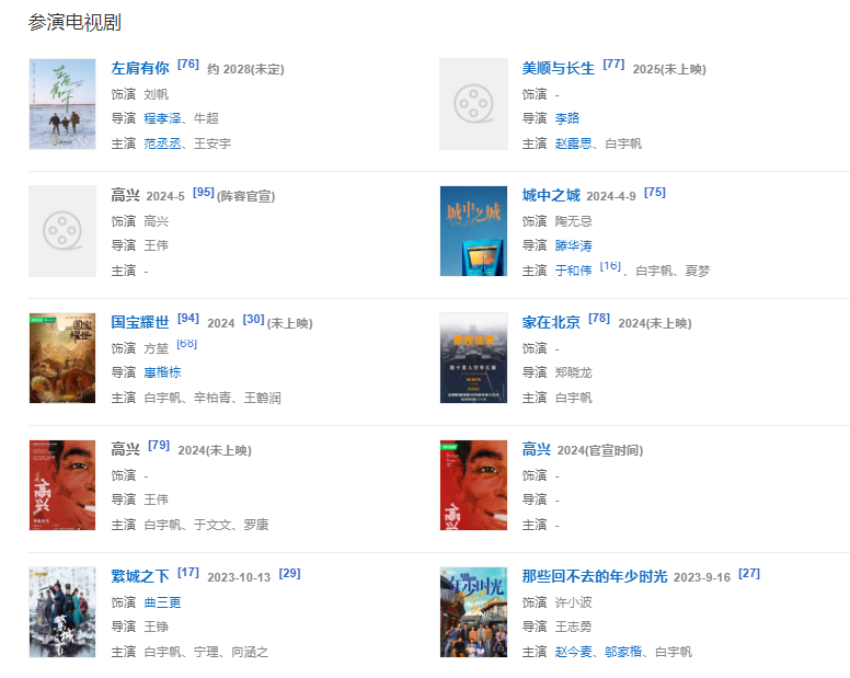 2019年10月,主演的古裝劇《戀戀江湖》播出,他也因此正式出道。作為一名95后青年演員,白宇帆的演藝事業(yè)并非一帆風(fēng)順,起初他只是在一些電影、電視劇中客串小角色,直到2021年1月,其主演的電視劇《山海情》播出,才因飾演馬得寶一角而為觀眾所熟知;同年7月,主演的都市話(huà)題劇《我在他鄉(xiāng)挺好的》播出;同年10月,主演的家庭懸疑劇《八角亭謎霧》播出。