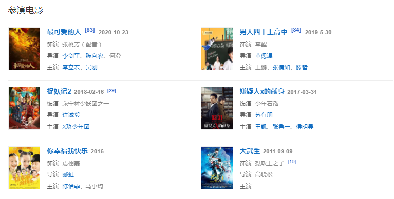 2018年8月,與王鵬搭檔主演校園情感電影《男人四十上高中》 ;