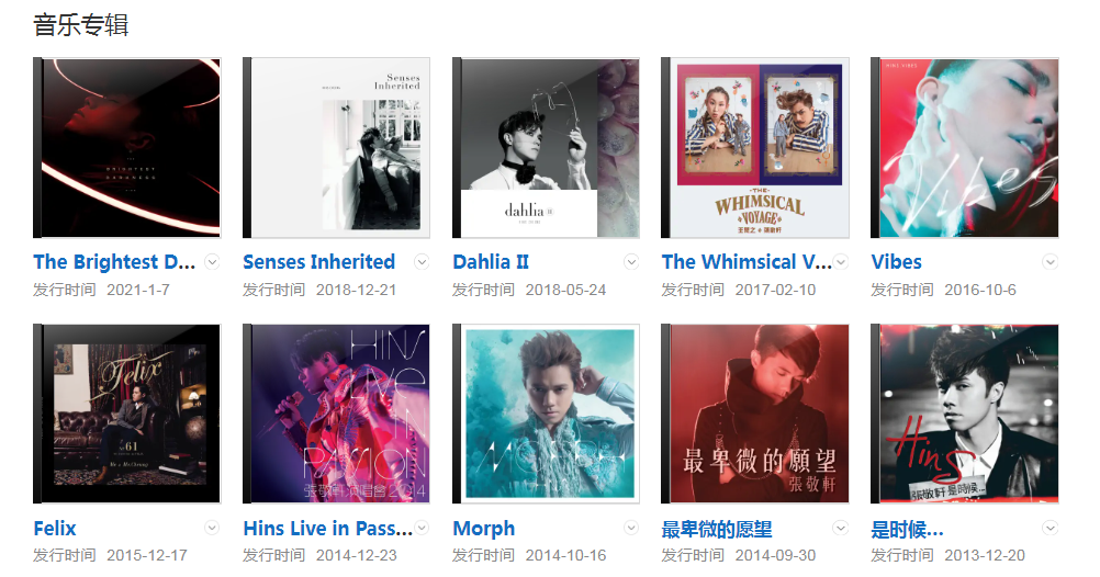 代表作品:My Way、斷點、酷愛、吻得太逼真、過云雨、春秋、只是太愛你、青春常駐、櫻花樹下、無能為力、笑忘書、追風(fēng)箏的孩子、百年樹木、騷靈情歌、不吐不快、Hurt So Bad、擁抱每一刻花火