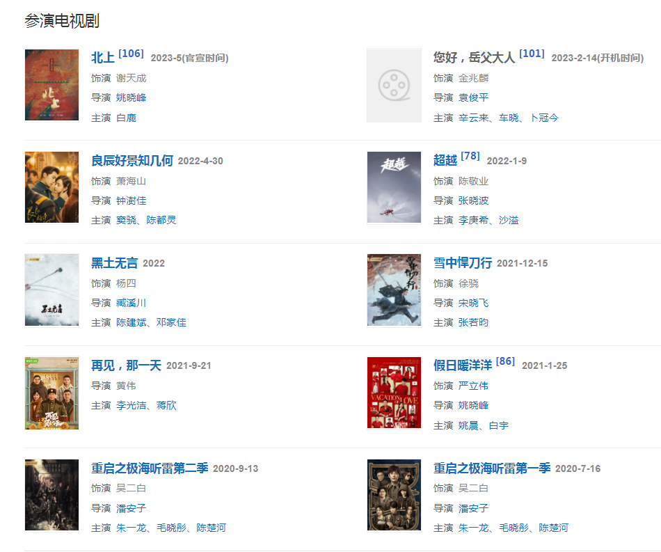 5月,與陳建斌、鄧家佳領(lǐng)銜主演社會懸疑刑偵劇《黑土無言》,在劇中飾演服刑人員楊四。