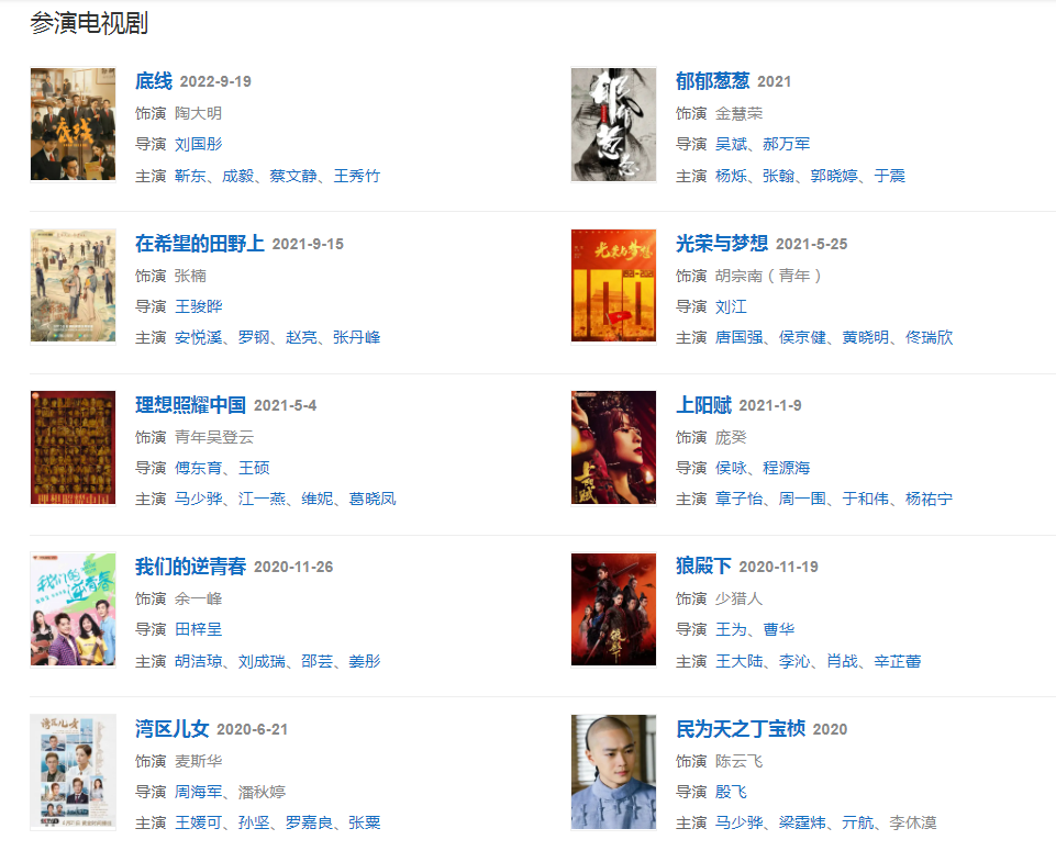 2021年5月25日,出演的重大革命歷史題材劇《光榮與夢(mèng)想》在北京衛(wèi)視、東方衛(wèi)視及騰訊視頻、愛奇藝、優(yōu)酷同步播出 ;9月15日,與安悅溪主演的電視劇《在希望的田野上》在騰訊視頻播出;參演電影《1921》; 參演電視劇《理想照耀中國(guó)》。