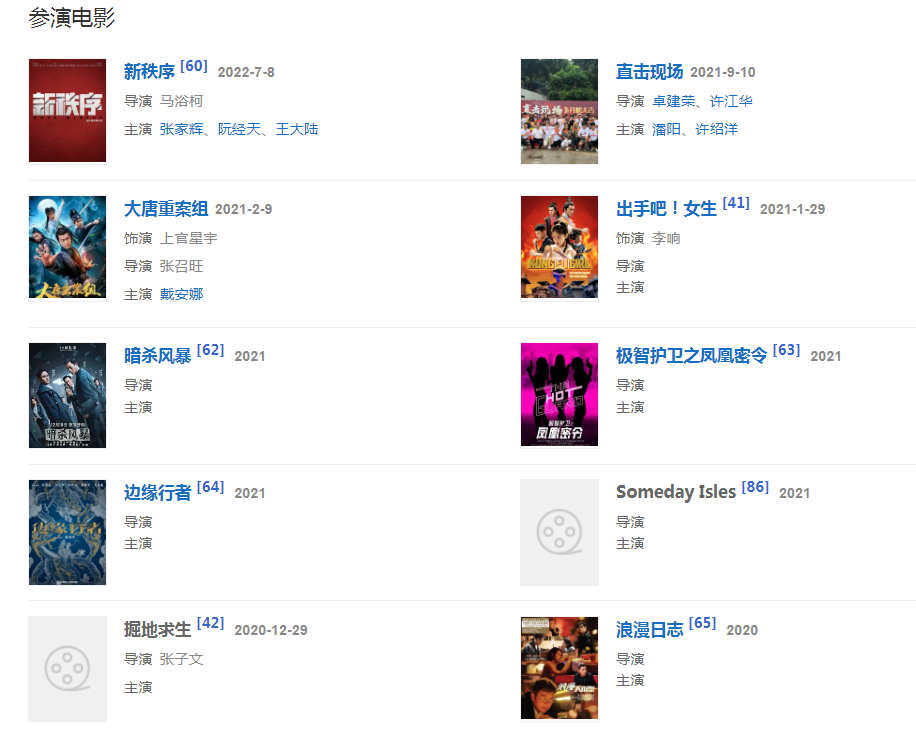 2022年4月15日,參演的犯罪動(dòng)作電影《邊緣行者》上映;7月8日,友情出演的犯罪動(dòng)作電影《新秩序》上映 。