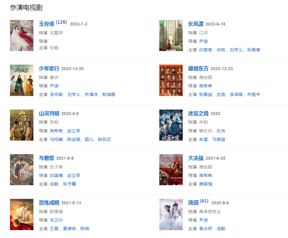 2013年出演抗戰(zhàn)題材電視劇《桐柏英雄》 《獵天狼》。