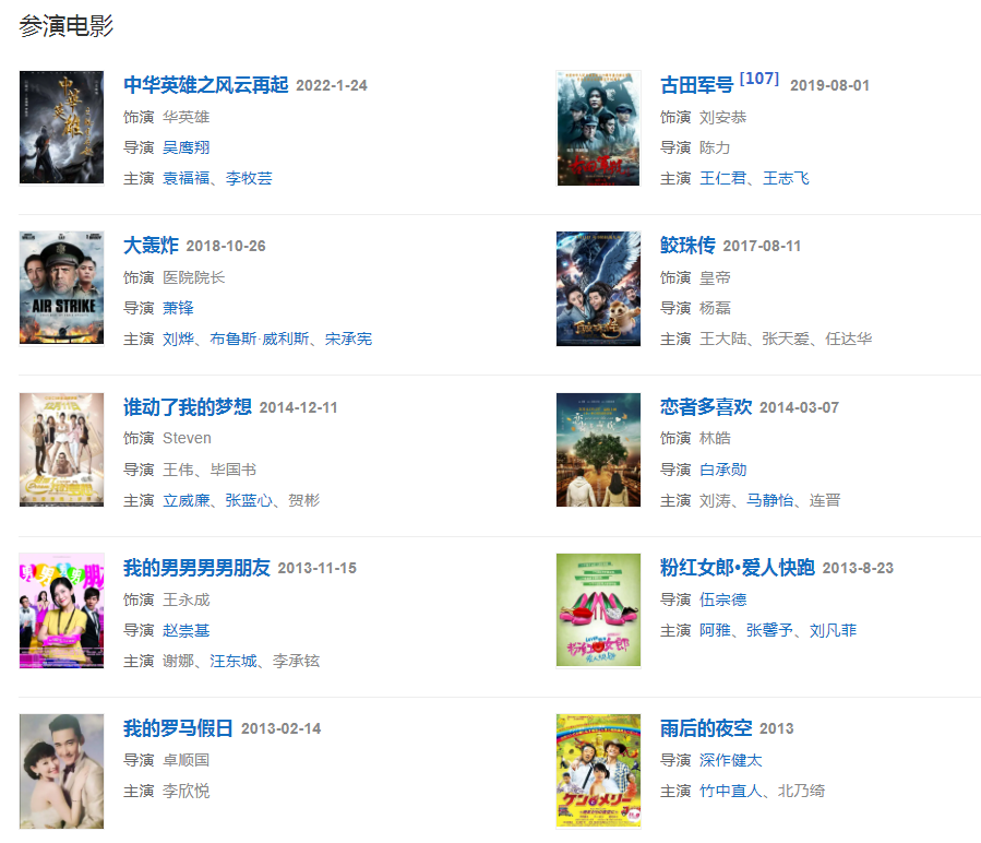 2022年1月24日,主演的電影《中華英雄之風(fēng)云再起》上映。