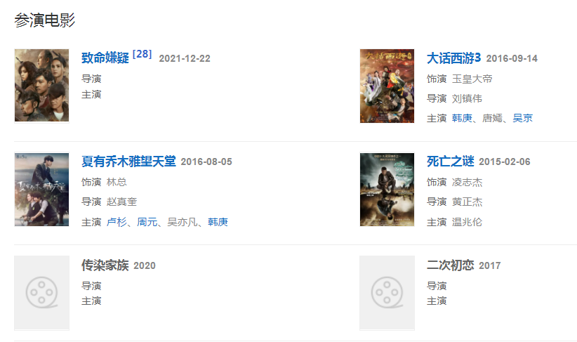 2016年和朱茵共同主演愛情電影《今夜二十歲》,飾演男主角蕭峰,同年,主演電視劇《大話西游之愛你一萬(wàn)年》,再次飾演玉皇大帝。接著又主演了神幻巨制《莽荒紀(jì)》,并顛覆形象和自我突破,飾演兇狠毒辣的大反派“神王”,引發(fā)關(guān)注。
