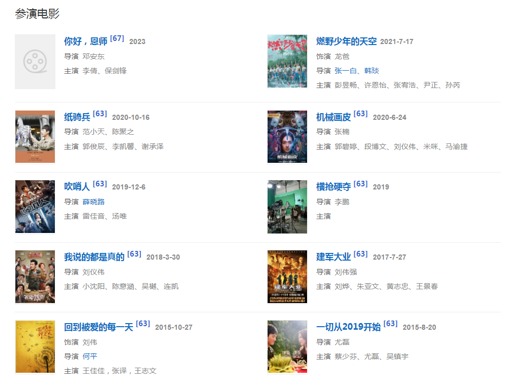 2021年7月,參演的電影《燃野少年的天空》播出;參演電視劇《上頭姐妹》。