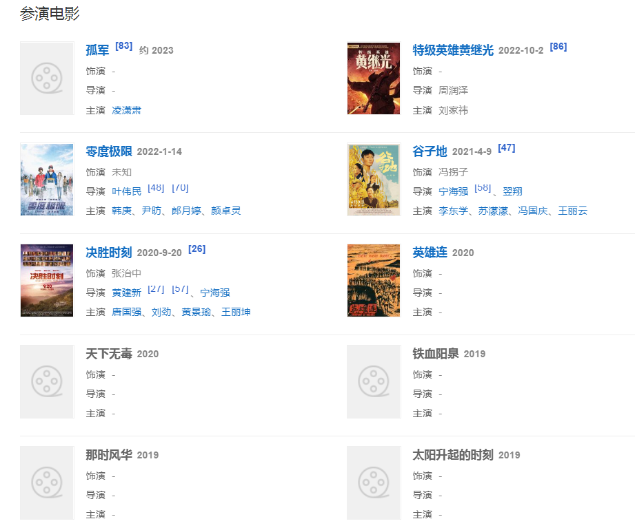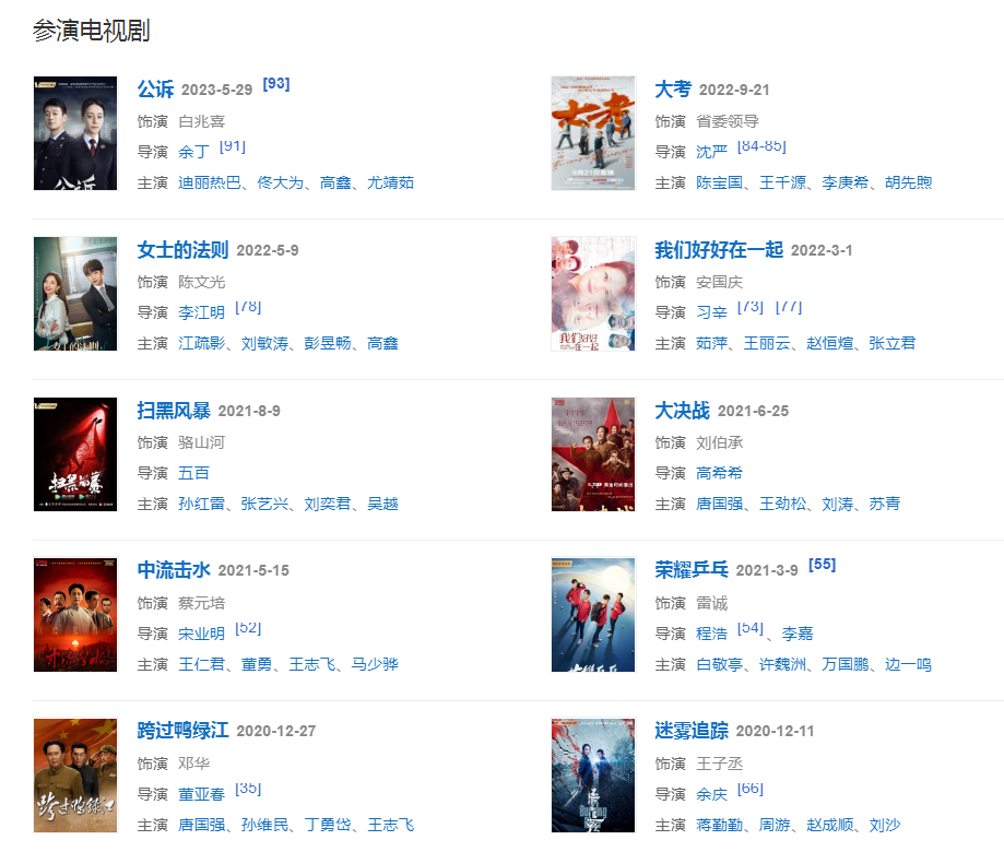 2020年,出演的抗疫題材電視劇《最美逆行者》和革命歷史題材劇《跨過鴨綠江》先后在央視一臺播出。