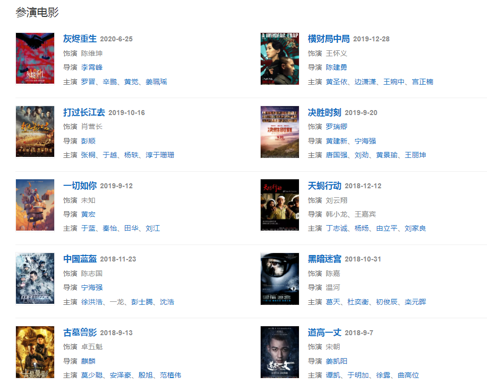 2020年,主演現(xiàn)實主義題材劇《幸福還會來敲門》在江蘇衛(wèi)視、浙江衛(wèi)視播出 ;由其參演的脫貧攻堅主題公益紀實類節(jié)目《溫暖有光放映隊》在CCTV-6播出。