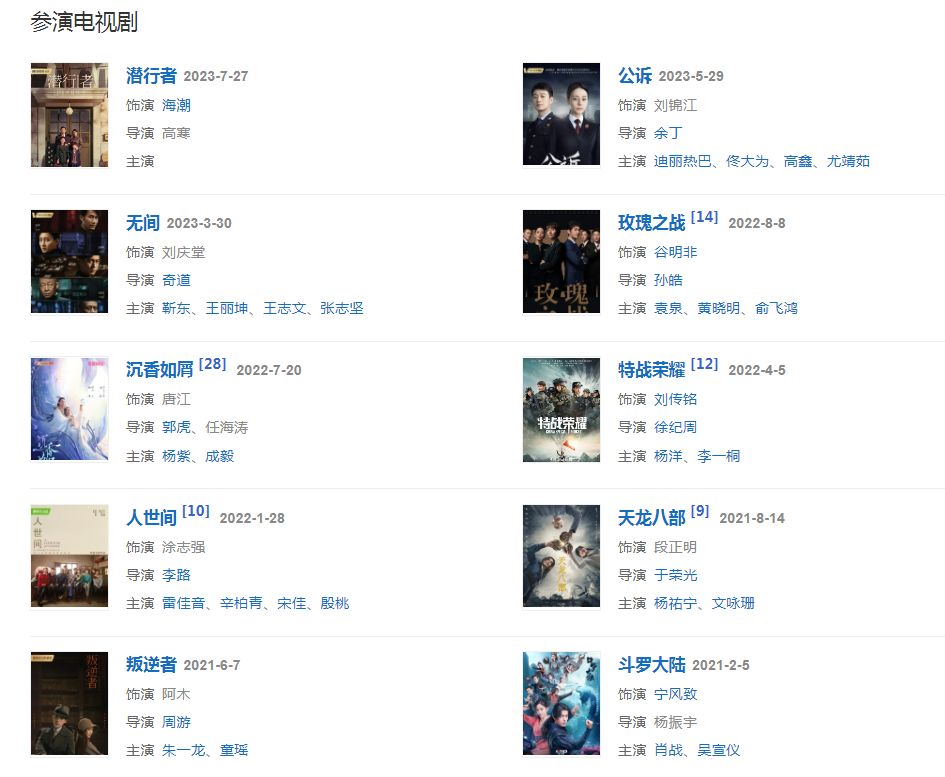 2021年6月7日,參演諜戰(zhàn)劇《叛逆者》播出 ;8月14日,參演的古裝電視劇《天龍八部》播出,在劇中飾演段正明。