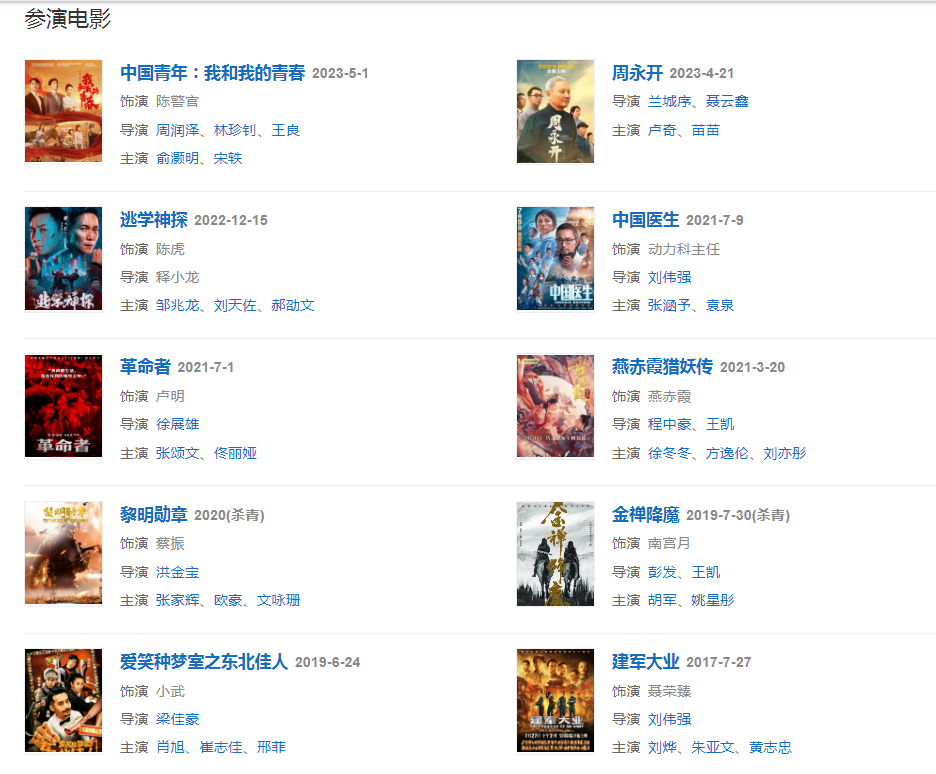 2021年7月1日,參演近代革命電影《革命者》 ;7月9日,參演醫(yī)療抗疫片《中國醫(yī)生》。