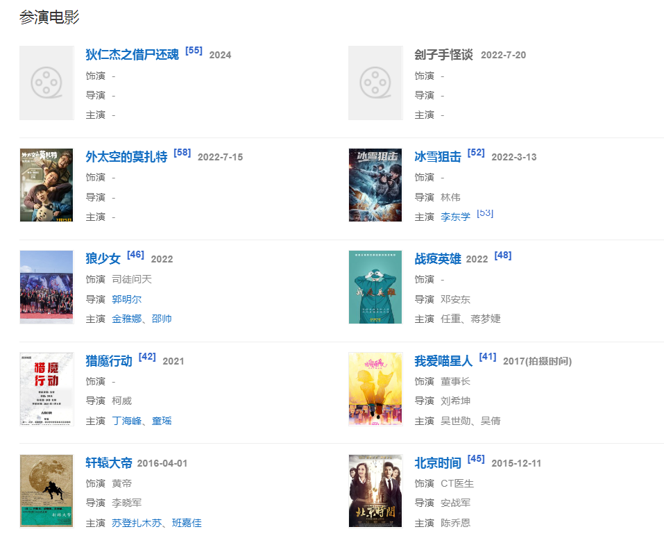 2022年3月13日,參演的電影《冰雪狙擊》在愛奇藝全網(wǎng)播出 ;3月,出演由孫閏偉、陳宇晗聯(lián)合執(zhí)導(dǎo)的古裝玄幻電影《最后的法師》,飾演劉玄李。
