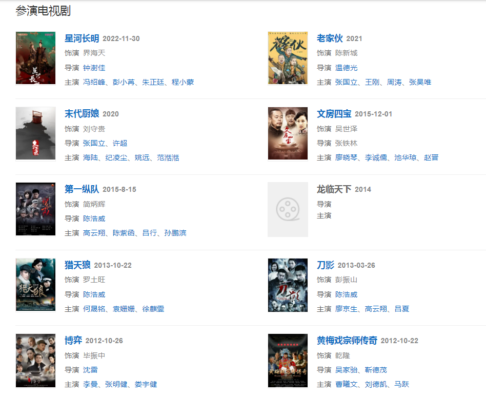 2001年開始與張國(guó)立、王剛形成“鐵三角”,主演系列古裝劇《鐵齒銅牙紀(jì)曉嵐》。