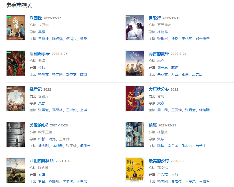 2020年6月,與羅晉、袁姍姍、沈夢(mèng)辰等共同主演扶貧攻堅(jiān)劇《江山如此多嬌》,在劇中飾演庸城縣縣長陳步勝。2020年10月,與陳坤、辛芷蕾共同主演“云”時(shí)代勵(lì)志職場(chǎng)劇《輸贏》,在劇中飾演林振威。