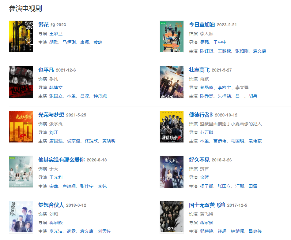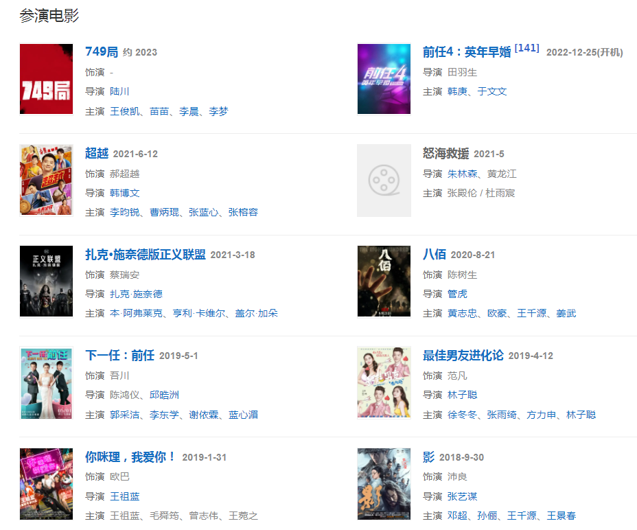 代表作品:影、致我們終將逝去的青春、私人訂制、前任攻略、國(guó)民大生活、也平凡