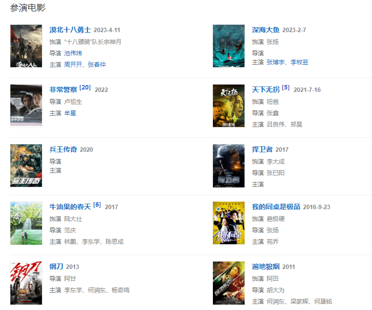 2016年9月,主演由王利興執(zhí)導(dǎo)的女性勵志諜戰(zhàn)劇《灰雁》 ;11月,主演由張巳陽、廖希執(zhí)導(dǎo)的動作抗戰(zhàn)題材電影《捍衛(wèi)者》。