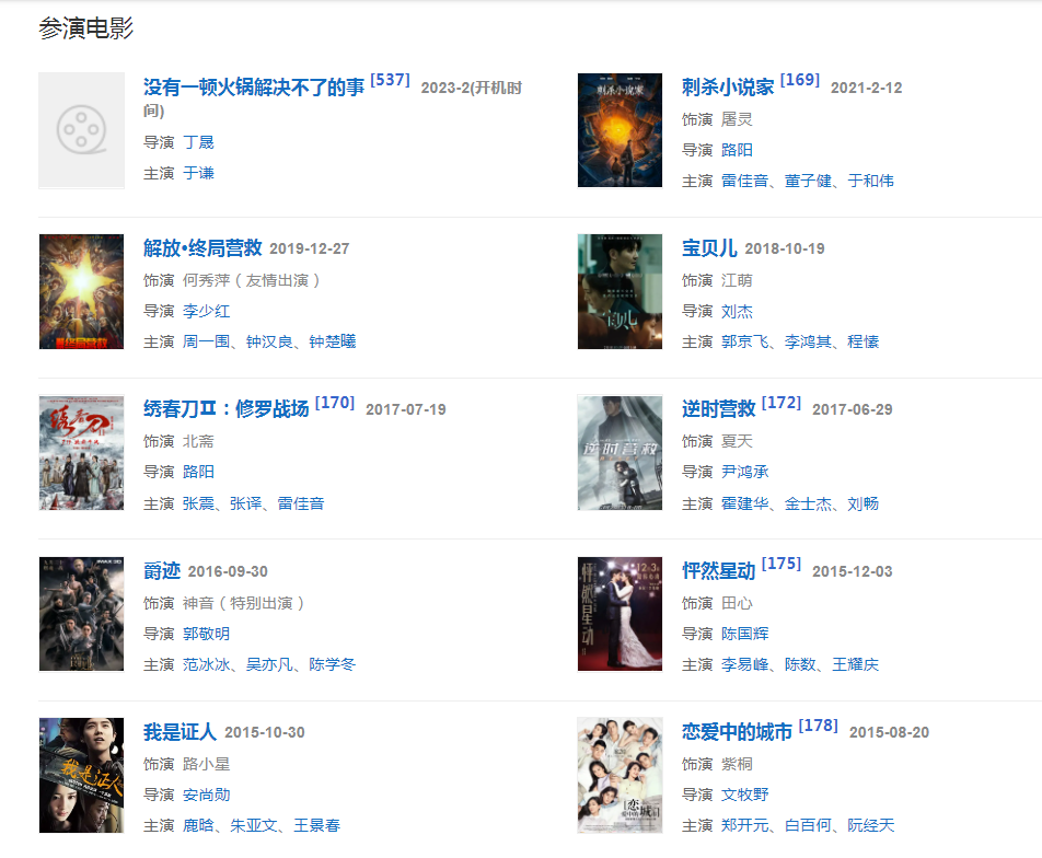 2023年5月4日,參加的勵(lì)志故事探尋綜藝《當(dāng)燃青春》播出 ;55月10日,主演的原創(chuàng)諜戰(zhàn)懸疑年代劇《哈爾濱一九四四》正式公布陣容并發(fā)布概念海報(bào);6月7日,作為固定嘉賓參加的真人秀《密室大逃脫第五季》開(kāi)播。