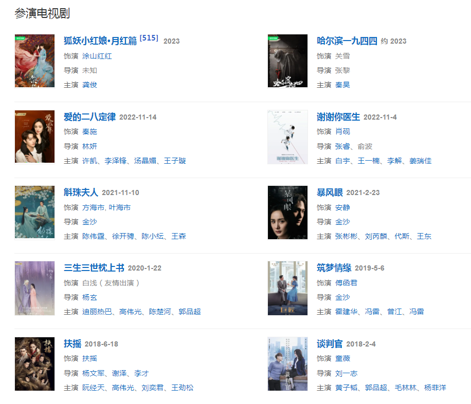 代表作品:三生三世十里桃花、宮鎖心玉、小時(shí)代、仙劍奇?zhèn)b傳三、親愛(ài)的翻譯官、我是證人、古劍奇譚、王昭君、北京愛(ài)情故事