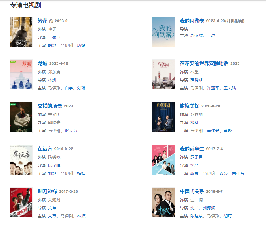 2023年3月3日,網(wǎng)劇《交錯(cuò)的場景》正式官宣由馬伊琍等人領(lǐng)銜主演。4月15日,領(lǐng)銜主演電視劇《龍城》。