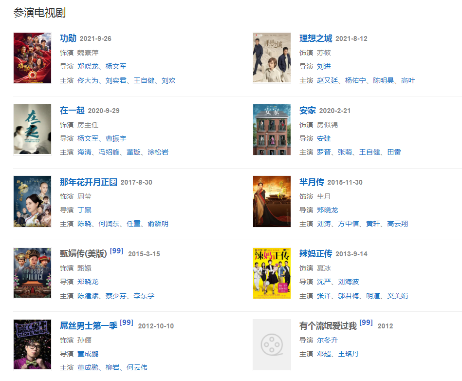 代表作品:甄嬛傳、玉觀音、幸福像花兒一樣、那年花開月正圓、羋月傳、新上海灘、辣媽正傳、血色浪漫、畫皮、影、霍元甲、愛如空氣、小小的夢(mèng)想、安家、理想之城、小姨多鶴、一米陽光