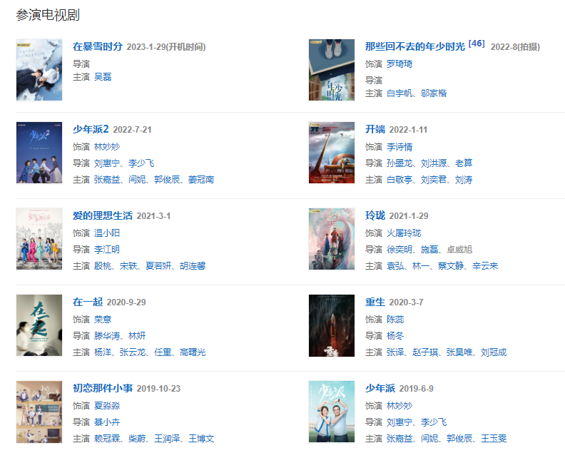 代表作品:流浪地球、我的!體育老師、少年派、小別離、初戀那件小事、開端