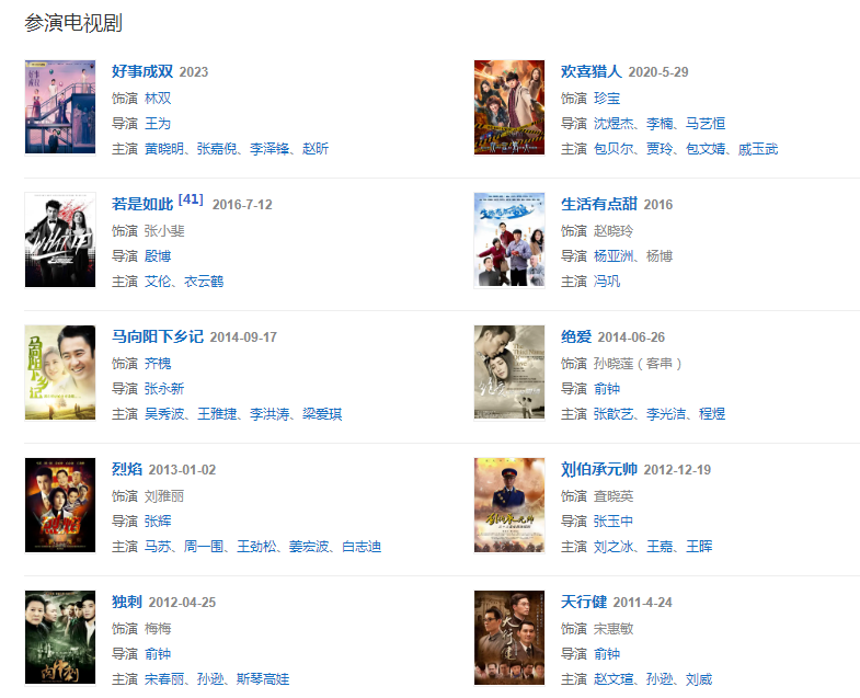代表作品:烽火歲月、敢死隊(duì)、飛天、馬向陽(yáng)下鄉(xiāng)記、喜劇總動(dòng)員、歡樂(lè)喜劇人第三季、開(kāi)心劇樂(lè)部、你好,李煥英、萱草花