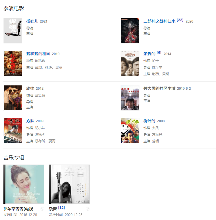 2009年因在百合獎(jiǎng)電影《方隊(duì)》中飾演“胡小妹”一角而被觀眾所熟知;