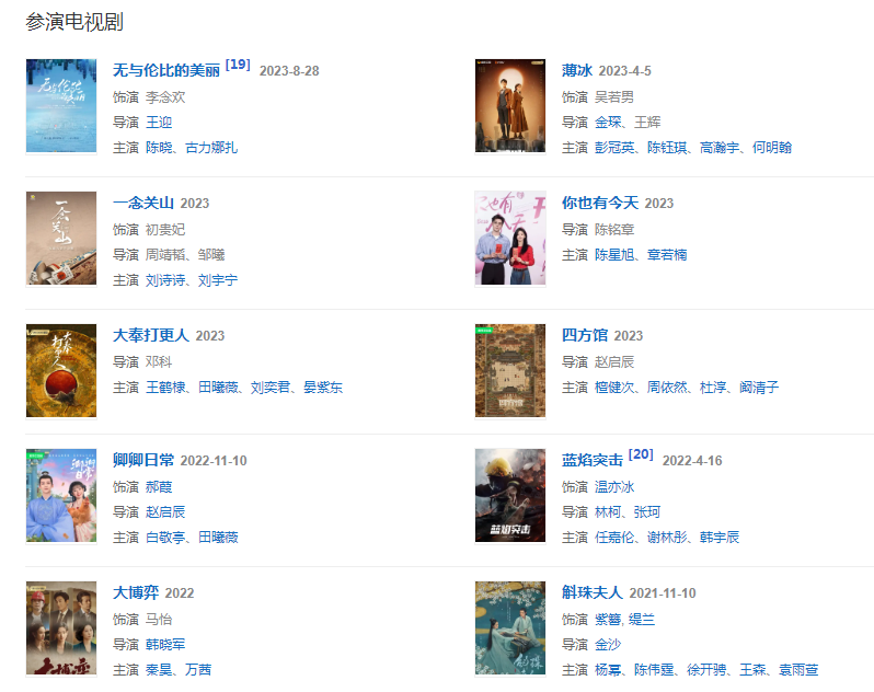 代表作品:如懿傳、斛珠夫人、小別離、青春斗、愛在星空下、讀心、藍(lán)焰突擊