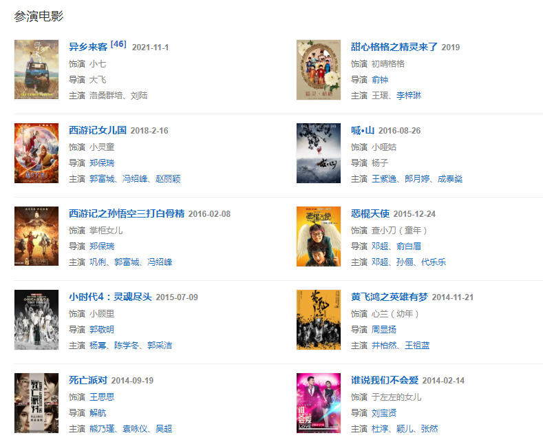 2017年9月,主演兒童科幻電影《甜心格格之精靈來了》;