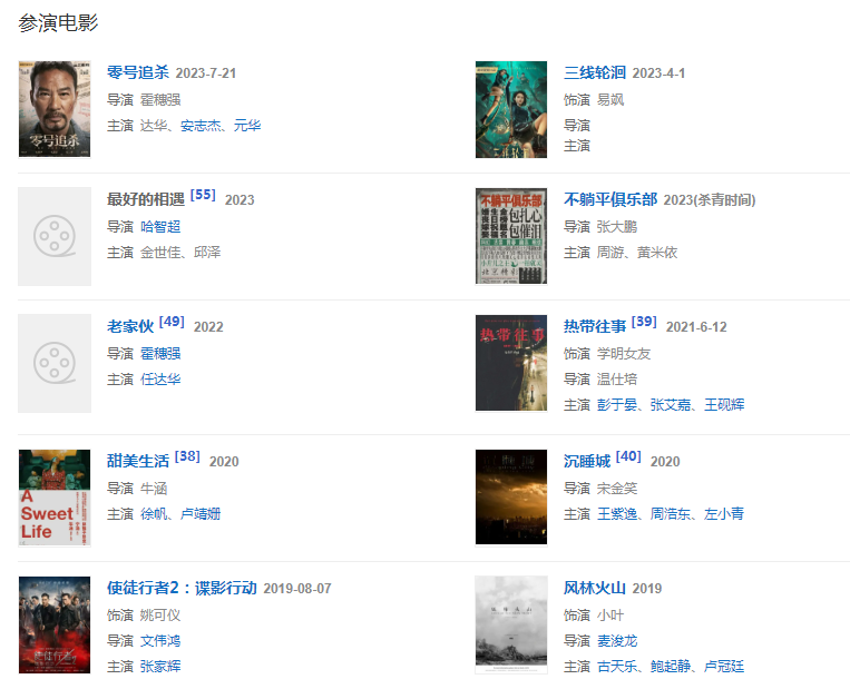 代表作品:使徒行者2:諜影行動、親愛的,熱愛的、悍城、你是我的城池營壘