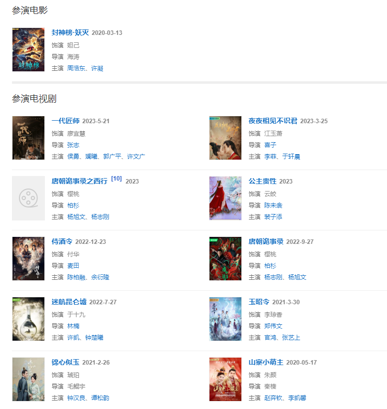 2017年6月,主演的《旋風(fēng)辣妹》在愛(ài)奇藝視頻上映;11月,主演的古裝武俠劇《拜見(jiàn)宮主大人》播出。2019年3月,主演的古裝武俠劇《拜見(jiàn)宮主大人Ⅱ》播出。