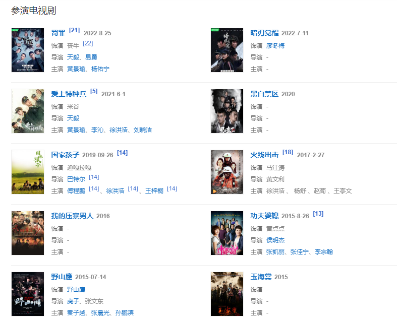 2008年,出演首部作品《利劍》。2010年,主演中國第一部展現(xiàn)隱秘戰(zhàn)線的戰(zhàn)士們生活的電視劇《冰是睡著的水》。2011年,主演劉猛執(zhí)導(dǎo)的軍旅題材劇《我是特種兵》。2013年,主演諜戰(zhàn)電視劇《與狼共舞2》和青春勵志軍旅偶像劇《特種兵之火鳳凰》。2020年,參演現(xiàn)代軍旅劇《親愛的戎裝》。
