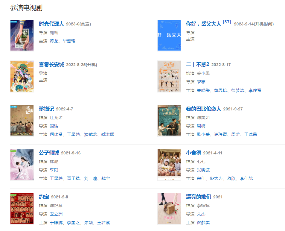 2021年4月,參演的電視劇《小舍得》播出;9月,主演的古裝輕喜劇《公子傾城》開(kāi)播 。
