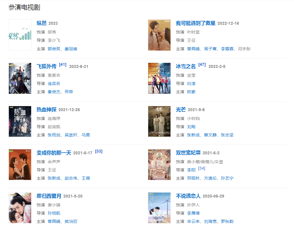 2023年1月20日,參加《東西南北賀新春》;1月22日,參加《“百花迎春”——中國文學藝術界2023春節(jié)大聯(lián)歡》,演唱歌曲《中華全家福》;5月10日,主演的奇幻愛情劇《縱然》開機。