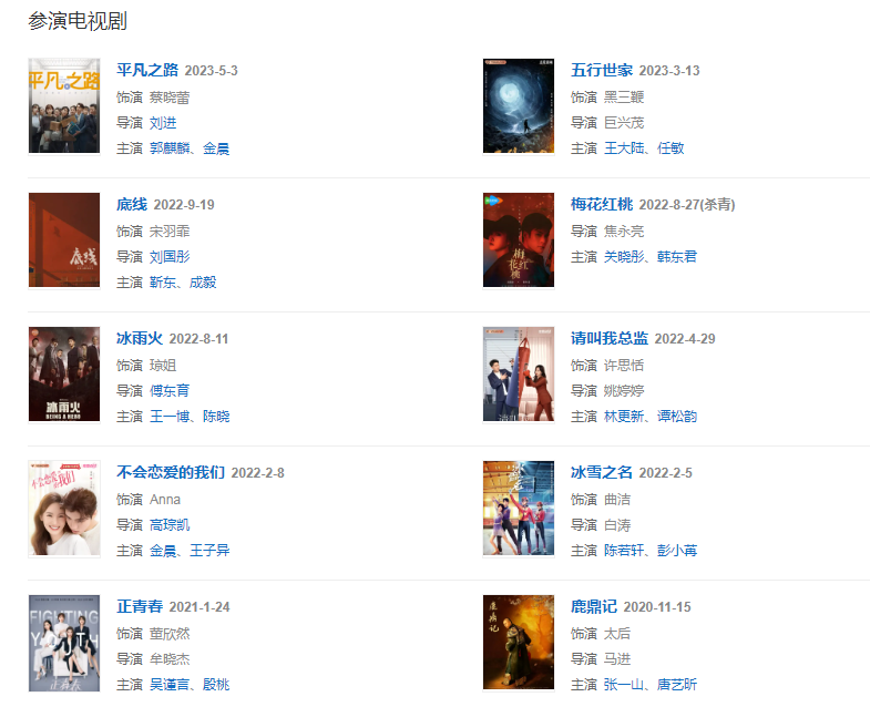 2020年11月15日,出演的古裝武俠輕喜劇《鹿鼎記》播出,在劇中飾演真假”太后。