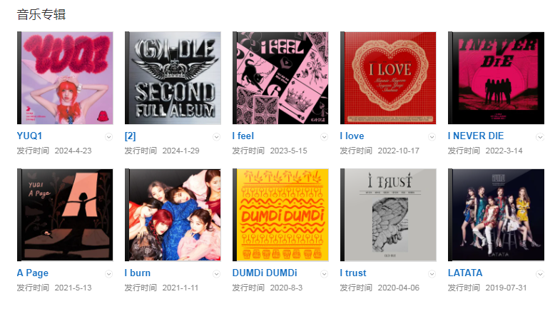 代表作品:FREAK、Could It Be、Giant、Bonnie & Clyde、LATATA、Senorita、Uh-Oh、Oh my god、DUMDi DUMDi、火花、TOMBOY、Nxde、Queencard、Super Lady