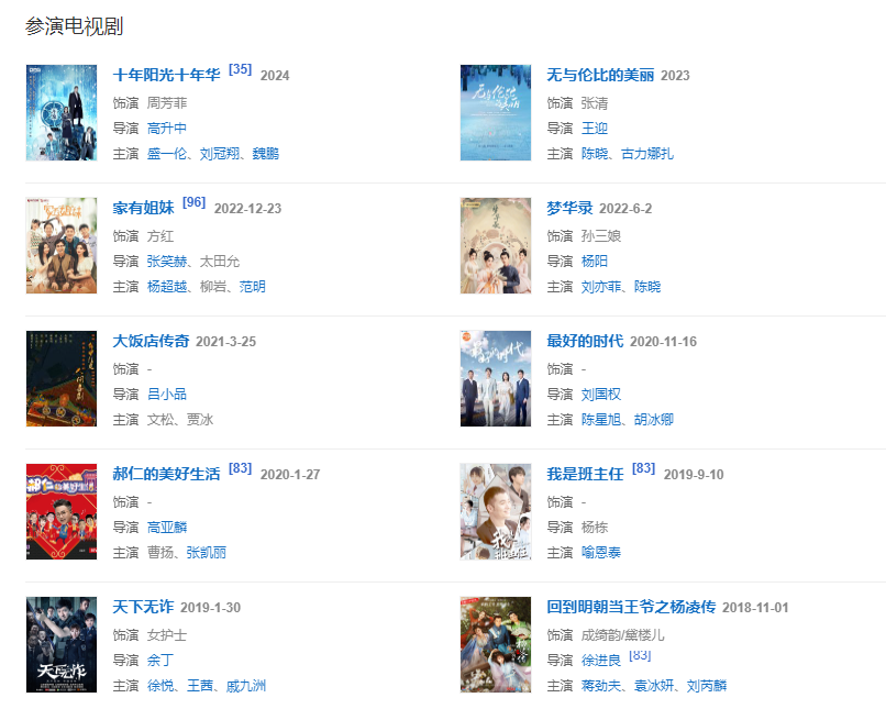 代表作品:少帥、受益人、煎餅俠、兩個(gè)女人的戰(zhàn)爭、大鬧天竺、大贏家、從你的全世界路過