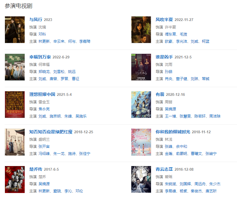 代表作品:陸貞傳奇、杉杉來了、知否知否應是綠肥紅瘦、花千骨、楚喬傳、乘風破浪、新還珠格格、老九門、青云志、誰是兇手
