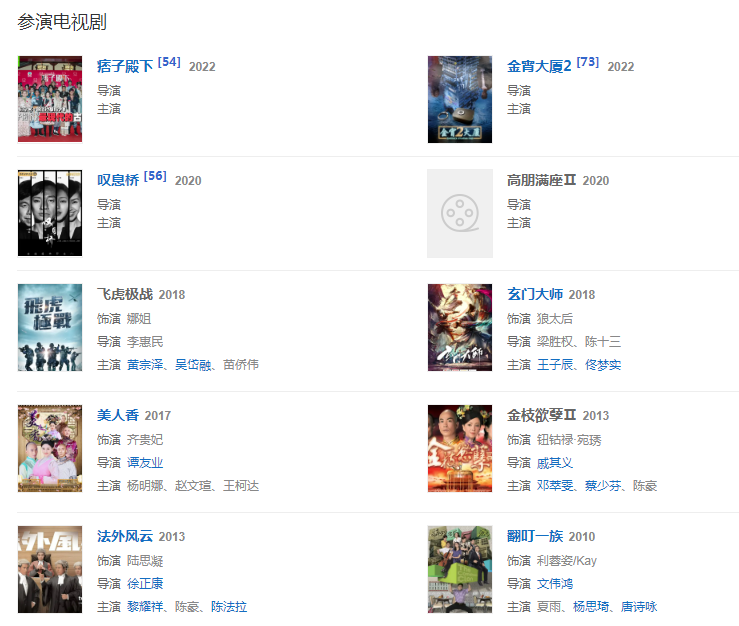 代表作品:銀狐、豪門、戲王之王、天地男兒、大唐雙龍傳、勝者為王Ⅲ王者之戰(zhàn)、金枝欲孽2、緣來自有機(jī)、街市的童話