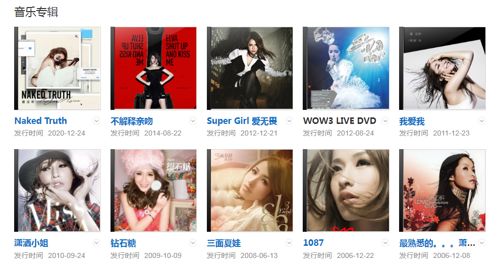 代表作品:最熟悉的陌生人、愛的主打歌、瀟灑小姐、類似愛情、錯的人、表白、突然想起你、一個人的精彩、當你和心跳一起出現(xiàn)、倒數(shù)、我愛你那么多、窗外的天氣、Naked Truth