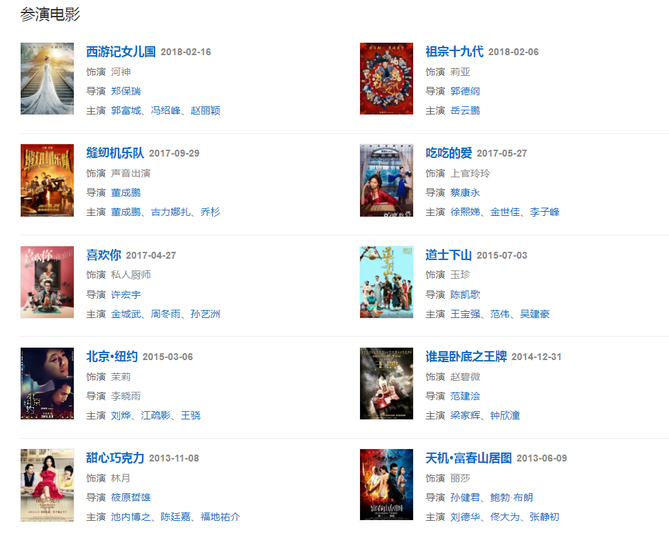 2018年,主演魔幻愛情喜劇《西游記女兒國》 。