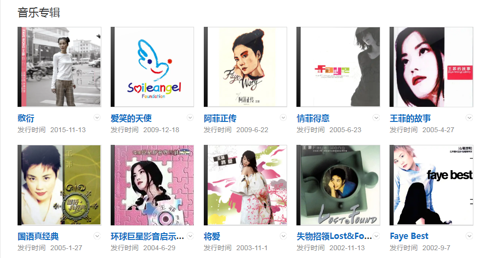 代表作品:容易受傷的女人、我愿意、天空、紅豆、Eyes On Me、夢中人、笑忘書、流年、你快樂所以我快樂、給自己的情書、約定、人間、匆匆那年、致青春、將愛、旋木、執(zhí)迷不悔、重慶森林、2046、天下無雙