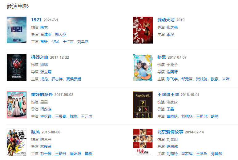 2014年憑借愛情電影《北京愛情故事》開始在影視圈嶄露頭角。