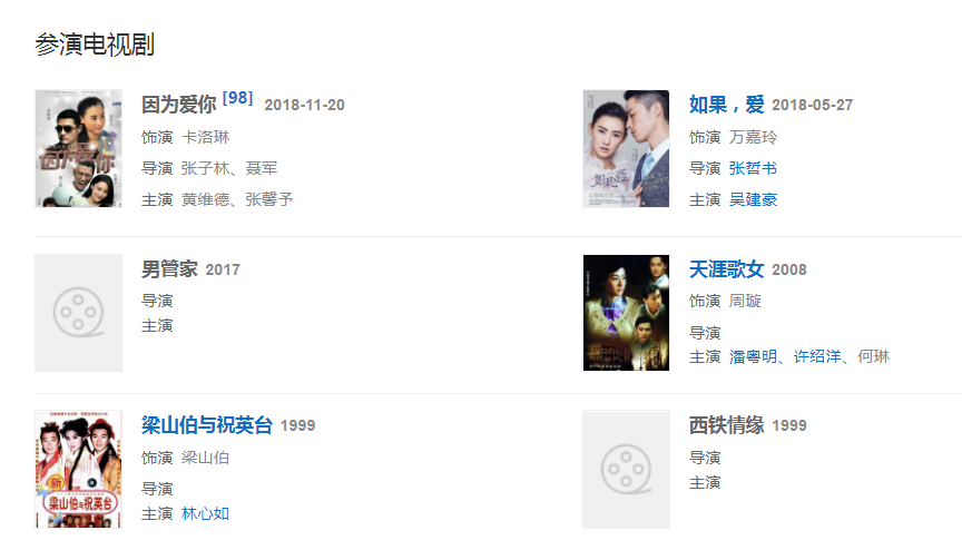 代表作品:星語心愿、喜劇之王、蜀山傳、河東獅吼、浪漫櫻花、忘不了、大塊頭有大智慧、旺角黑夜、無極