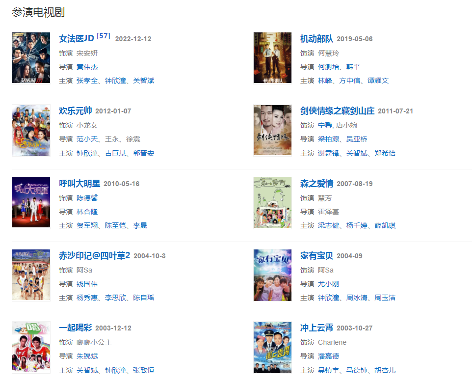 代表作品:下一站天后、齊天大圣孫悟空、小酒窩、情癲大圣、財神客棧、白蛇傳說、千機(jī)變、二缺一、明明、年年、歡樂元帥